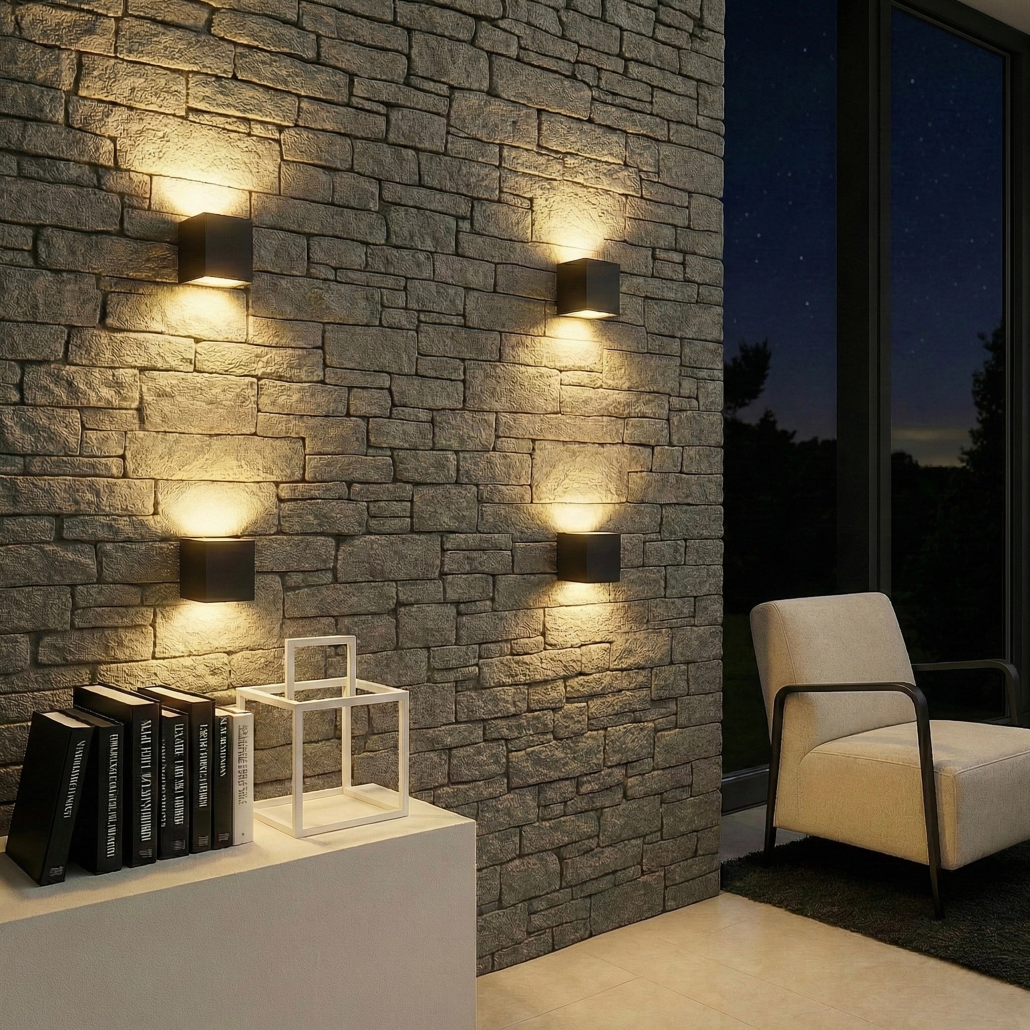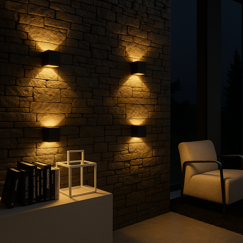 Unsere Wandleuchte fügt sich bei Tageslicht harmonisch und unaufdringlich in jede Umgebung ein. Doch sobald die Dämmerung einsetzt, zeigt sie ihr wahres Können: ein stimmungsvolles Lichtspiel, das mit Formen, Schatten und Wärme begeistert. Dank durchdachtem Design und fein abgestimmtem Lichtbild entsteht ein Ambiente, das moderne Eleganz mit funktionalem Nutzen verbindet – perfekt für Außen- wie Innenbereiche.