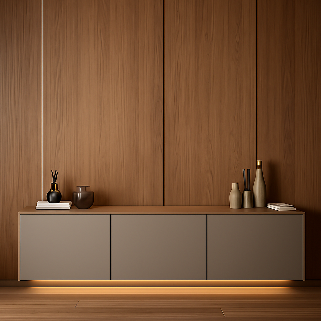 Hochwertige Materialien erzeugen ein stimmungsvolles Lichtbild für moderne Räume.