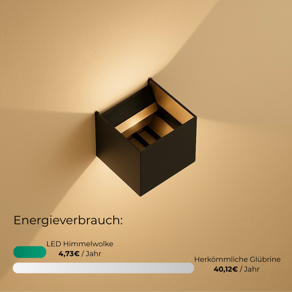 Unsere LED-Wandleuchte spart nicht nur Platz, sondern auch Geld. Mit einem jährlichen Energieverbrauch von nur 4,73 € ist sie der klare Gewinner gegenüber herkömmlichen Glühbirnen, die mit bis zu über 40 € pro Jahr zu Buche schlagen.